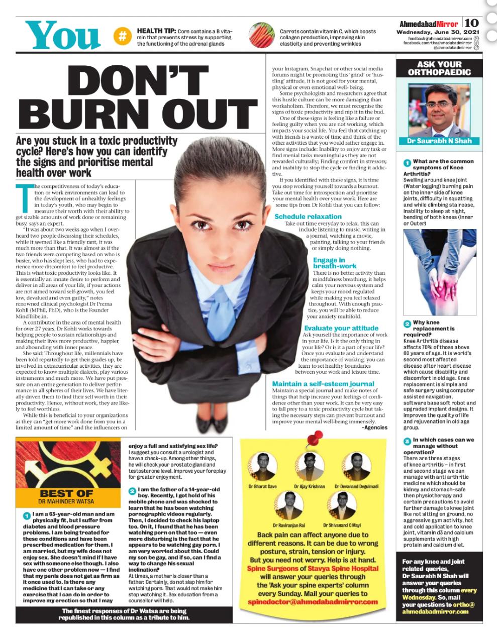 Dr. Saurabh N. Shah Article in Divya Bhaskar